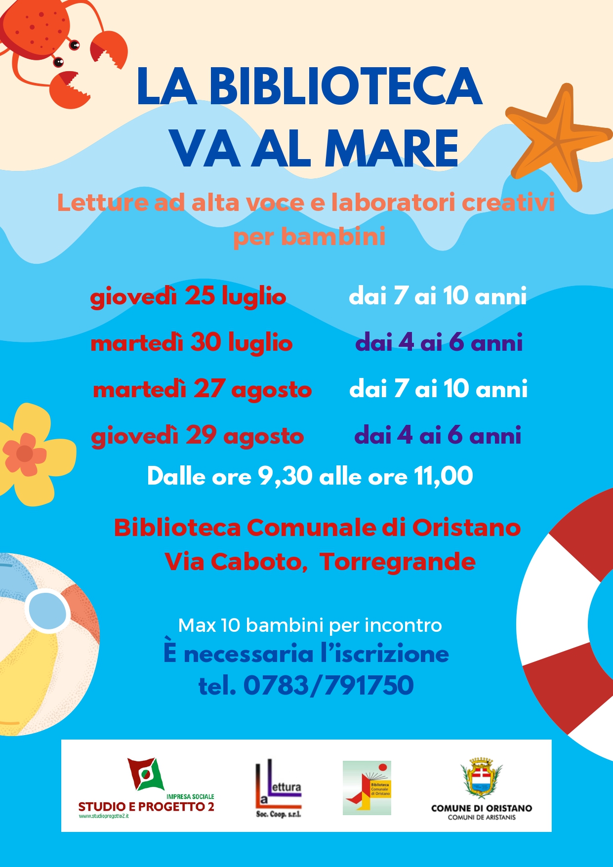 Massimo 10 bambini per incontro, è neccessaria l'iscrizione 0783791750